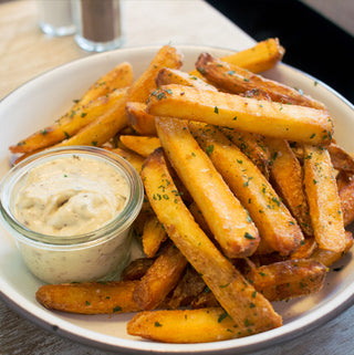 • L’Aïoli avec des frites ! Remplacez la sauce ketchup traditionnelle en trempant vos frites bien croustillantes dans de l'aïoli.
