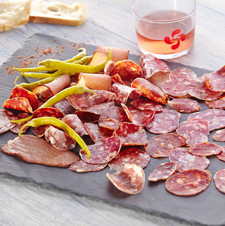 Assortiment de saucissons, chorizos, lomo ou jambon finement tranché pour un apéritif de 4 personnes