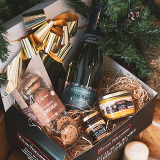 Sur notre coffret prestige "accord parfait", une véritable invitation à la gourmandise autour du champagne de notre ami Frédéric Ragault viticulteur indépendant à Prouilly dans la Marne.