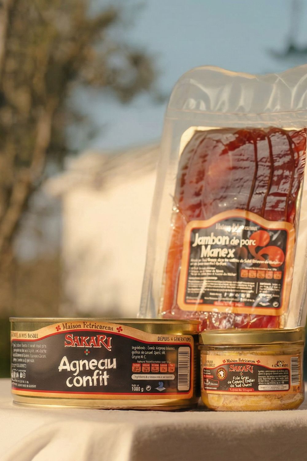 Commencez votre repas avec le foie gras et le jambon Manex à partager, puis poursuivez avec l’agneau confit simplement réchauffé, accompagné de pommes de terre ou de légumes de saison.