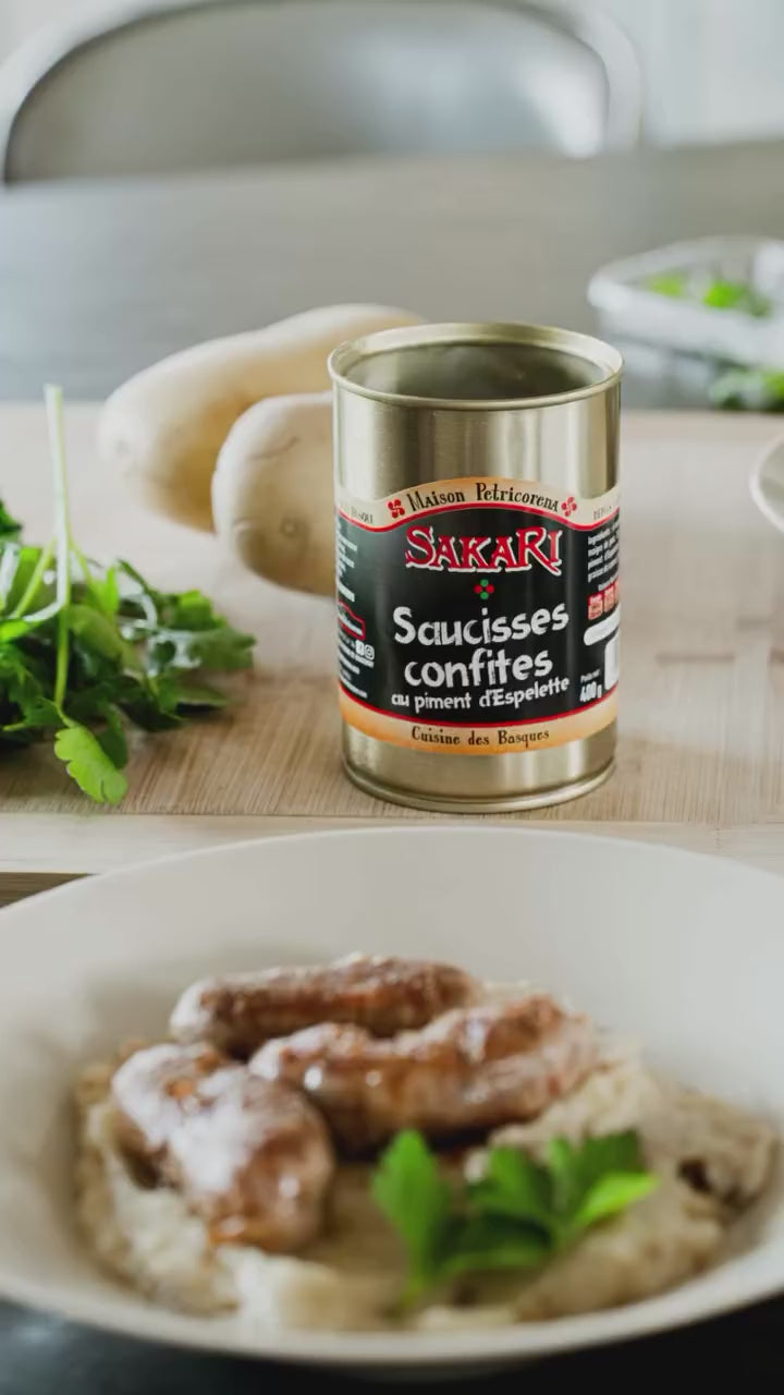 - Saucisses de campagne traditionnelles longuement mijotées dans la graisse de canard