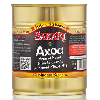 - Axoa de Veau et de Bœuf 380 g : L'Axoa est un plat traditionnel basque qui allie viande de veau et bœuf, piment doux du Pays Basque, oignons et épices. Réchauffez doucement l'Axoa et servez-le avec du riz ou des pommes de terre pour un festin basque.